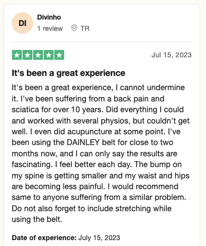 Eliminated their sciatica after 2 weeks of consistent use (wearing the belt for 2 hours/day avg.)