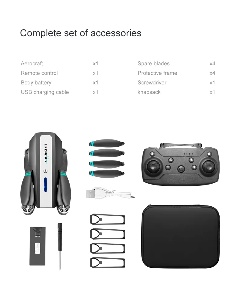 Up / Down, Forward / Backward, Left / Right, Lateral Flight, Level 3 Flight Speed, LED Light, Follow Me, Flight Around, Waypoint Flight, Altitude Hold Mode, Headless Mode , One-button return, one-button take-off / landing, WiFi FPV, camera / video