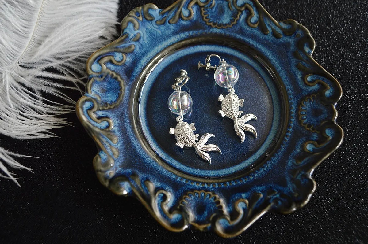 Size: earrings total length 6cm, goldfish length 3cm