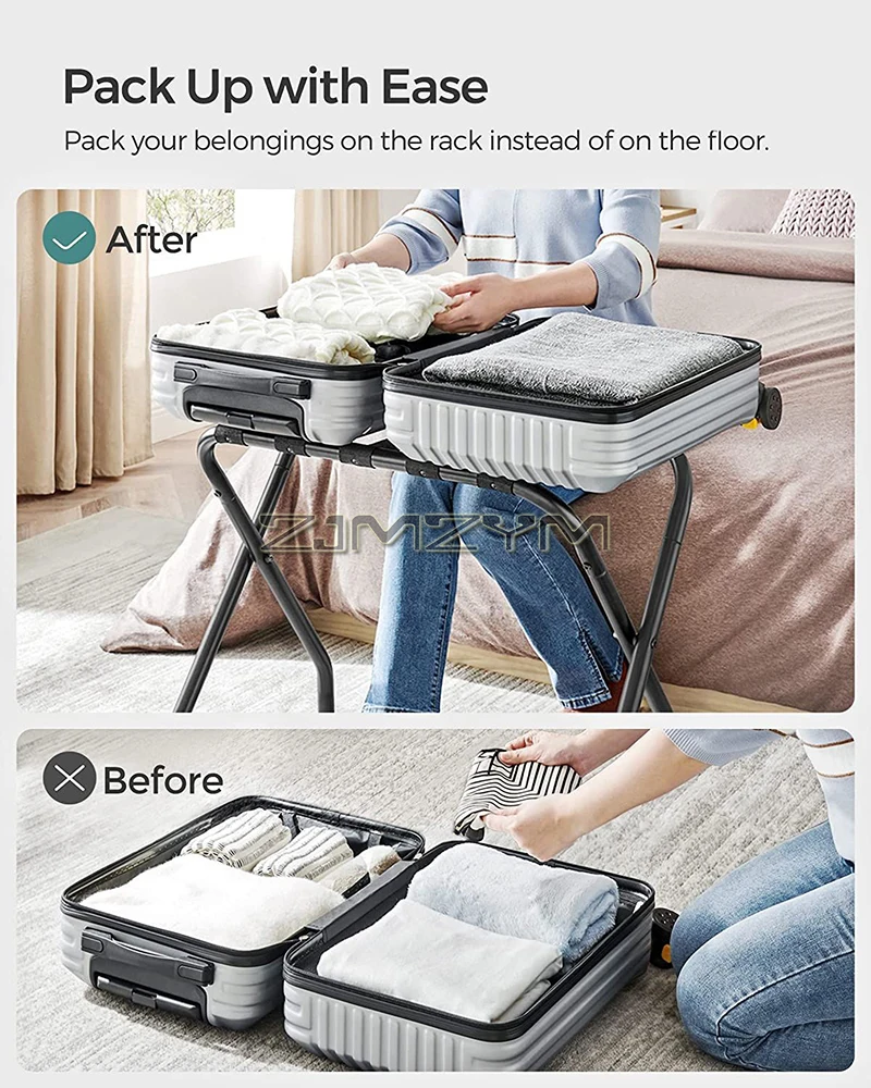 In hotels or vacation rentals, the Luggage Rack is a thoughtful addition to guest rooms. It provides a professional touch while ensuring that guests have a comfortable space to store their luggage. The foldable feature makes it easy to store away when not in use or when preparing rooms for the next guest.