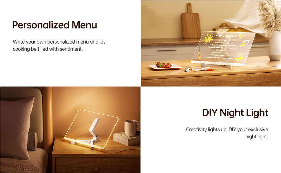 - 【High-Definition Acrylic Light-Up Message Board】 Made of premium acrylic material, this reusable dry erase board is USB-powered and measures 30×20cm (11.8×7.9in). Comes with a stand, a cleaning cloth, and 7 colorful markers, perfect for home, office, restaurants, and more