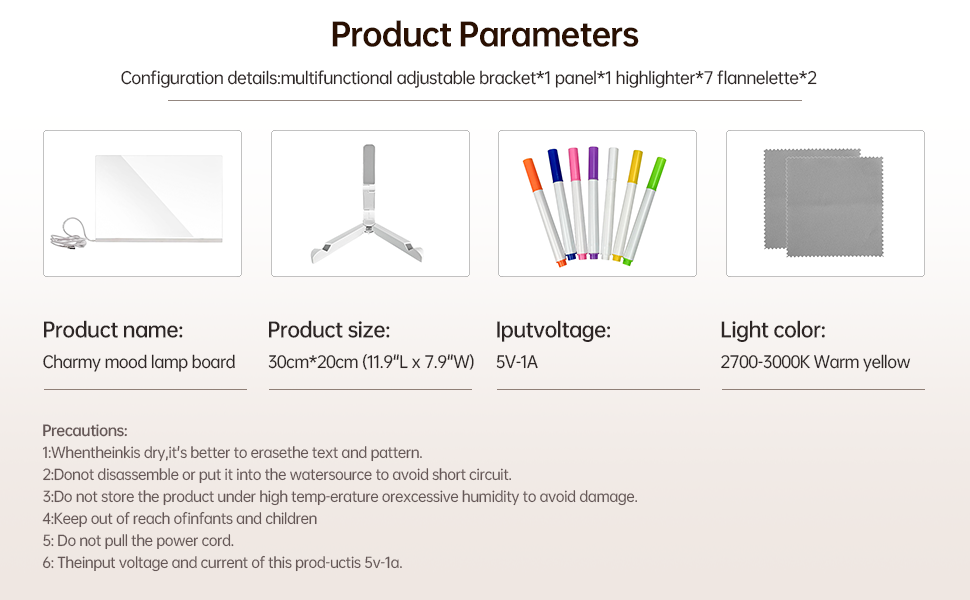 - 【High-Definition Acrylic Light-Up Message Board】 Made of premium acrylic material, this reusable dry erase board is USB-powered and measures 30×20cm (11.8×7.9in). Comes with a stand, a cleaning cloth, and 7 colorful markers, perfect for home, office, restaurants, and more