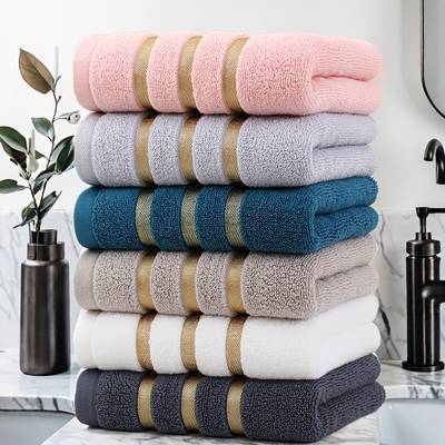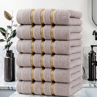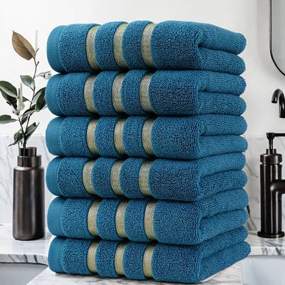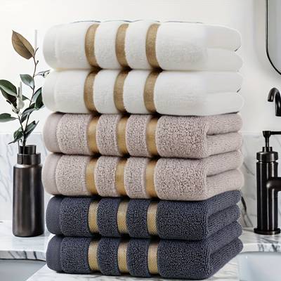 Luxury 6pcs Cotton Towel Set Soft, Absorbent Hand Towels with Striped Pattern