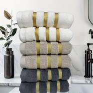 The Luxury 6pcs Cotton Towel Set offers soft, absorbent towels with a modern striped design and high-quality cotton construction. Perfect for everyday use, gifting, or creating a luxurious spa experience at home, these towels bring comfort, style, and durability to your bathroom.