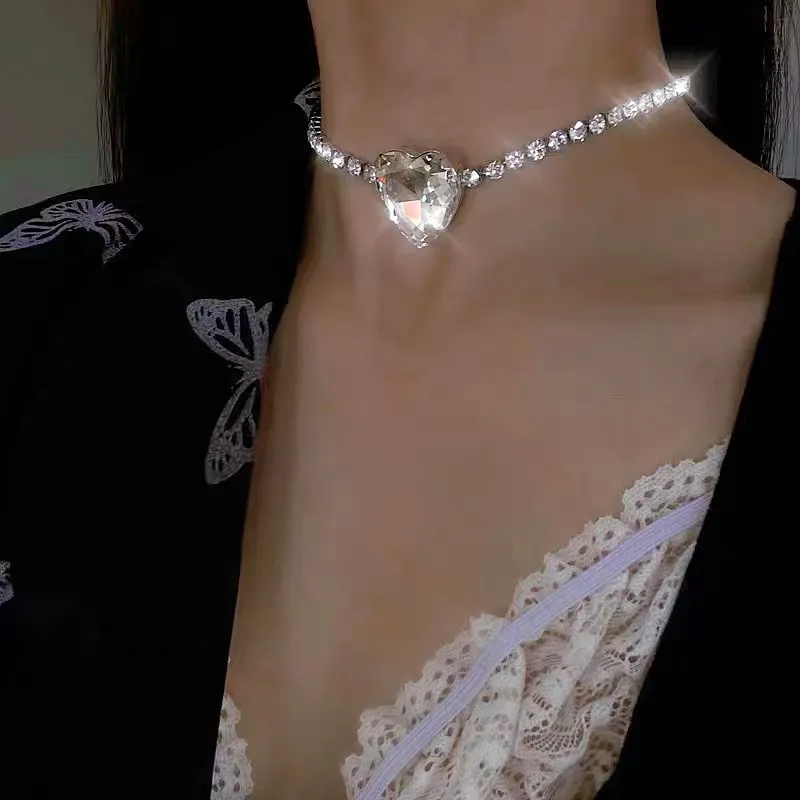 Luxury Big Heart Necklace Women's Wedding Dress All-match Clavicle Chain