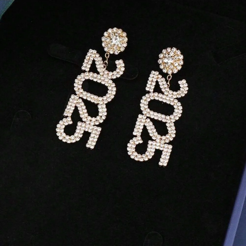 Ring in the New Year with style and elegance. These earrings are the perfect accessory to wear as you count down to 2025. The rhinestone embellishments and letter drop design will make you the star of any New Year’s Eve gathering, ensuring you shine all night long.