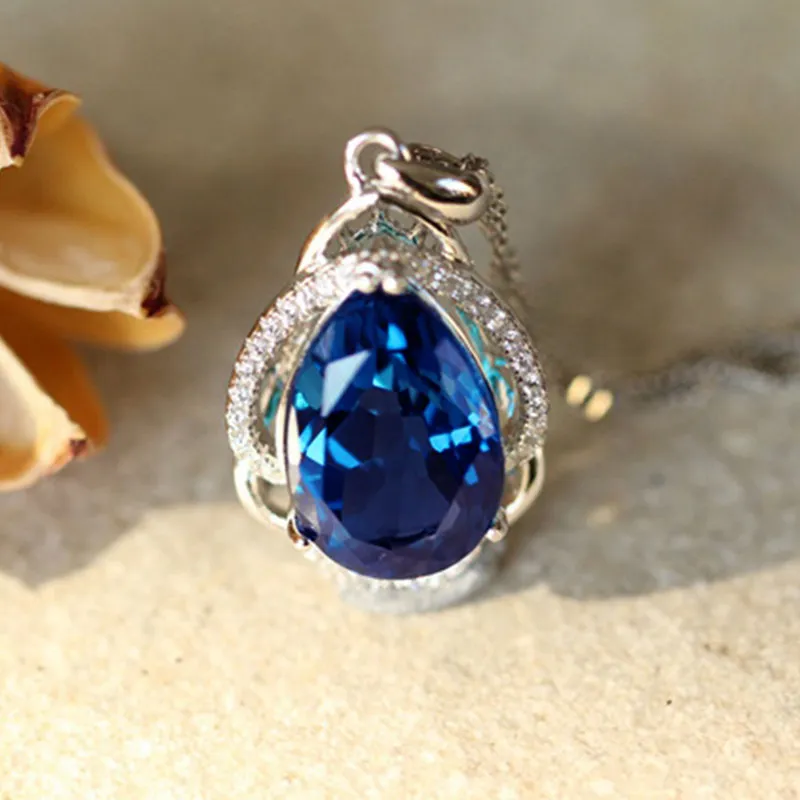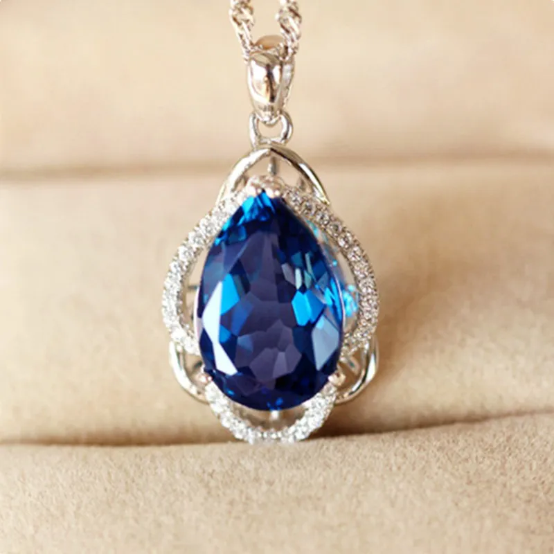 Luxury Simulated Royal Blue Zircon Necklace
