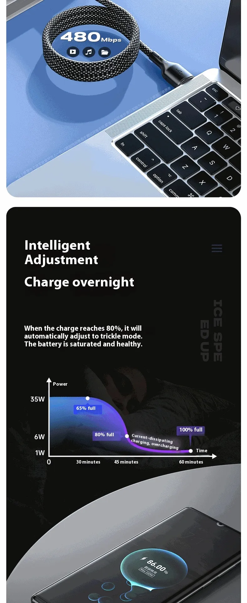 - Charging up to 100W & Data transfer up to 480 Mbps
