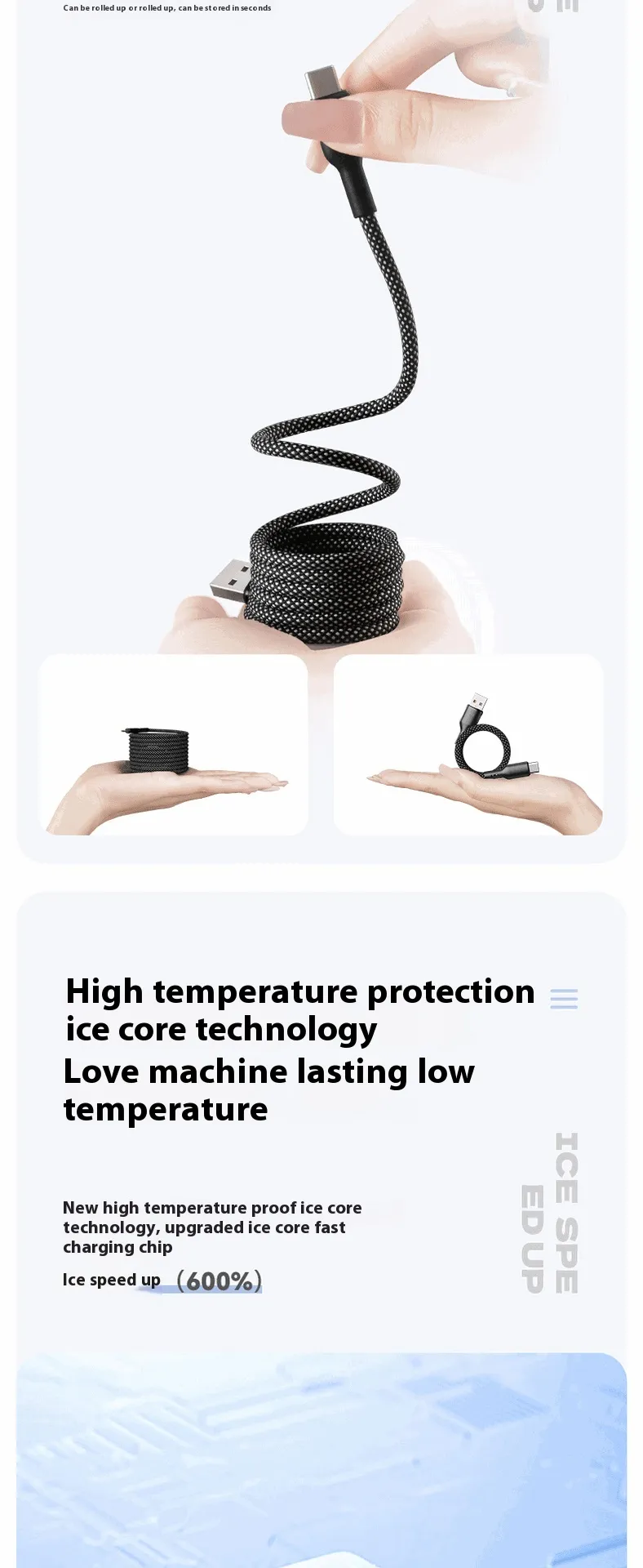 The Magnetic Anti-Tangle Cable is a game-changer in the world of charging accessories, offering a convenient solution to tangled wires and frustrating charging sessions. Designed with a magnetic feature, this cable ensures easy connection and quick detachment without the mess of tangled cords. Whether you're at home, in the office, or on the go, this cable will keep your space organized, your devices charged, and your cords hassle-free.