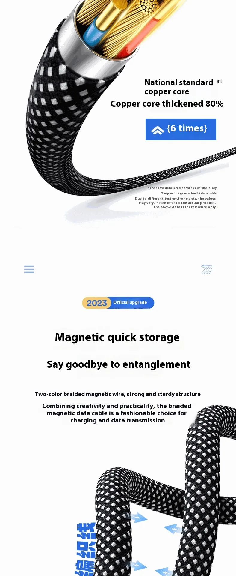 Constructed with durable materials, the cable is designed for long-lasting performance, with a robust outer layer that resists wear and tear. The magnetic design not only helps with organization but also prevents unnecessary stress on the cable, prolonging its lifespan. Its compact and flexible design makes it ideal for travelers and those with limited space, as it is easy to roll up and store without worry.