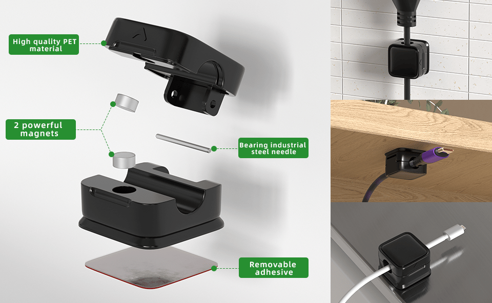 Magnetic grasp opening and closing allow easy cord in instead of strugglling the cord into,and powerful magnetic lock the organizer firmly prevents any cord coming out