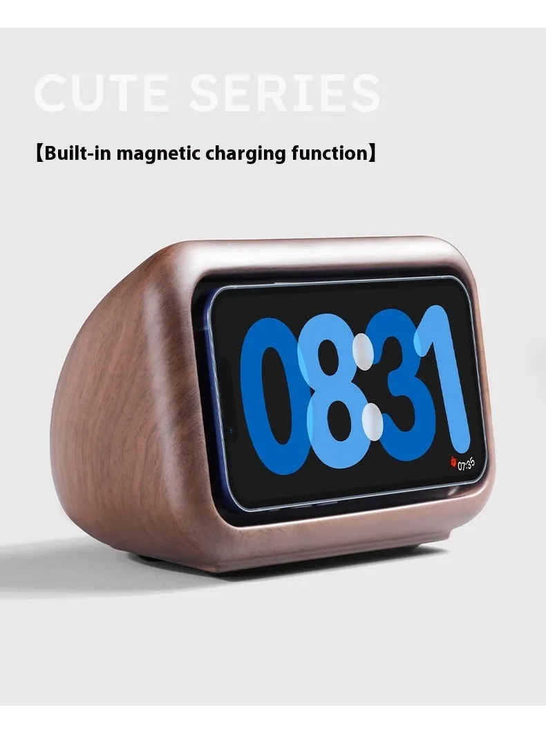 Small wooden alarm clock magnetic charging stand,