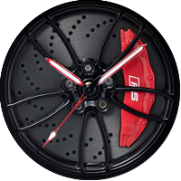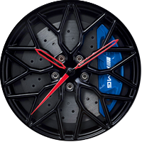 This automotive-inspired aesthetic captures the power of motorsport. Highly durable scratch-resistant round sapphire crystal, eye-catching decorations include calipers, multi-spoke design wheels and slotted discs.
