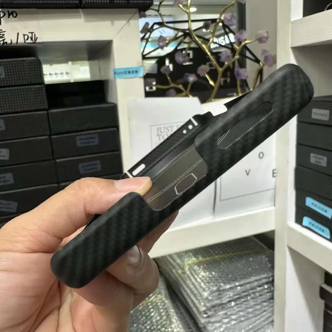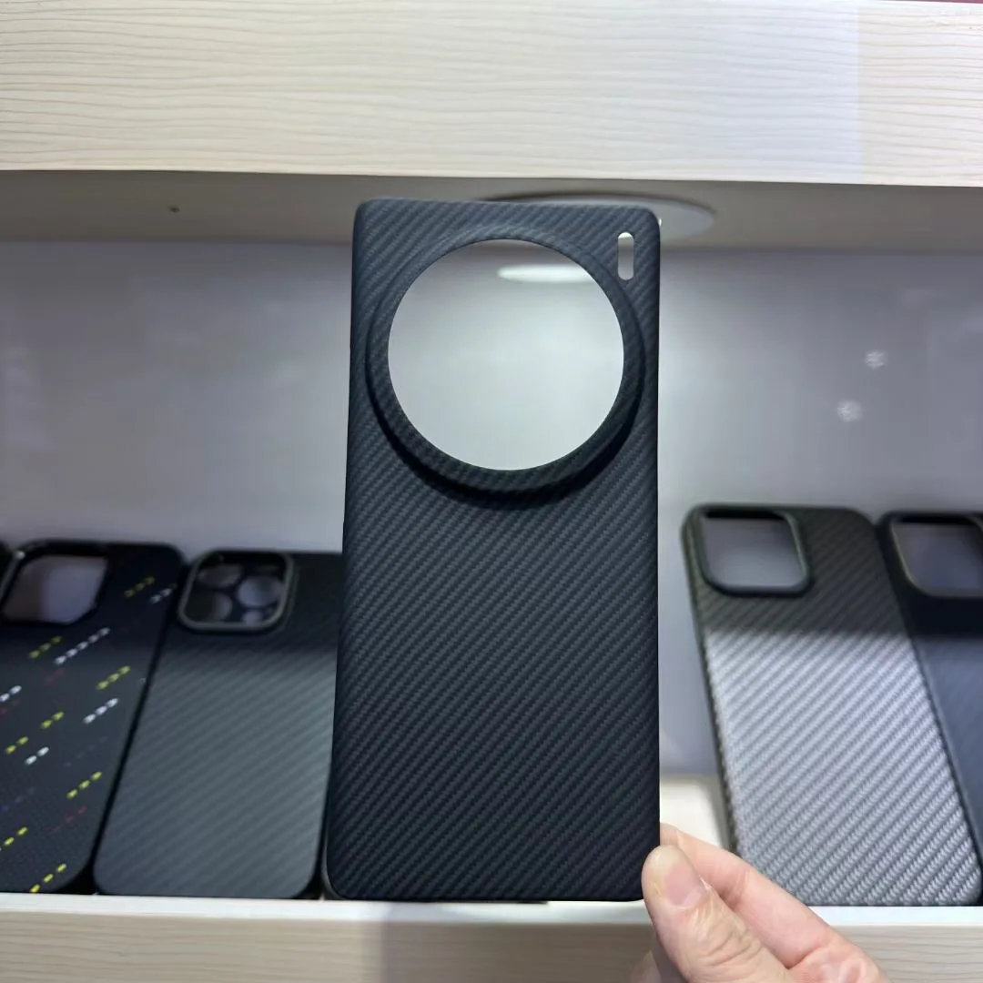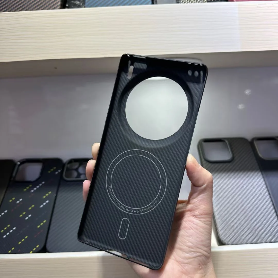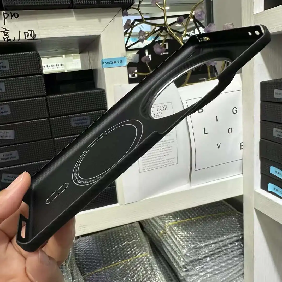 This MagSafe case for the Vivo X100 Ultra is made from premium carbon fiber and aramid fiber, offering exceptional shockproof protection. The sleek design integrates MagSafe compatibility, ensuring secure attachment to accessories while providing robust defense against impacts and scratches.