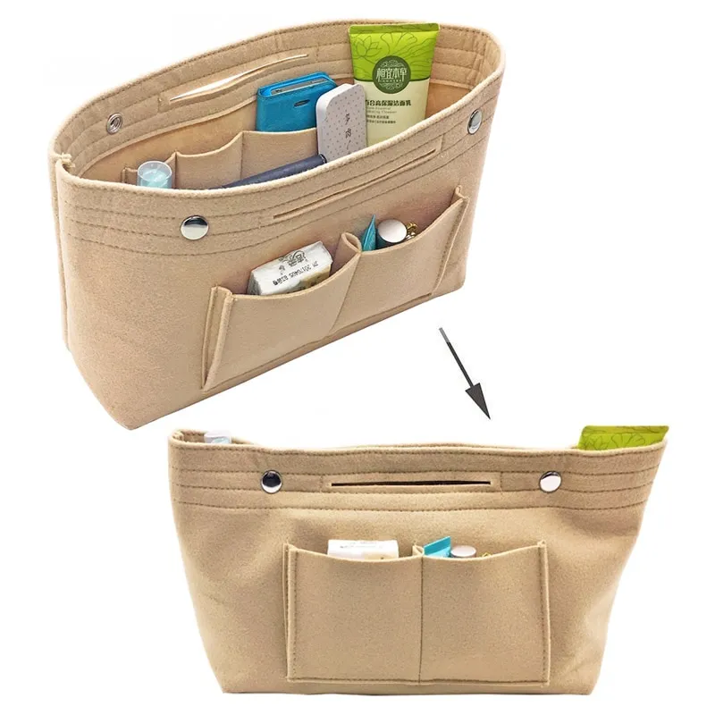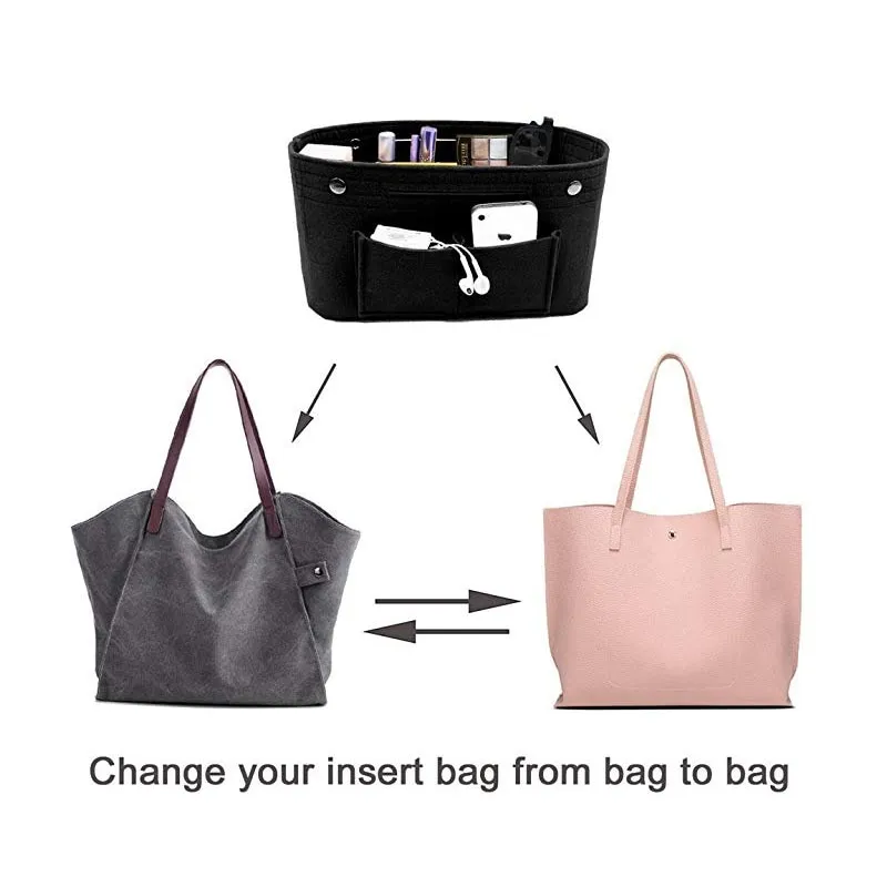felt tissueSize: 28 * 18 * 9 cm, perfect for holding cosmetics, cell phone, cards, notebook, etc.High Quality and Durable Material: Made of Hardwearing Felt Fabric Soft and flexible, lightweight and wellbuilt. Thick Felt Fabric to Better Protect Your Items, Suits for a Variety of Tote Bags Modelsbags, easily take away and save your time for moving to another bag or tote bag.large Capacity: Various pockets to sort your personal animals, 1 large pockets, 5 lining pockets, 3 outsidepocket. This Multi-Pocket Organizer Bag for Everything You Need As Cosmetics, Eyeliner, Lipstick, Pens, Lipbalm, moisturizers, keys, cell phone, glasses, notebook and much more well-organized.Fashionable and Convenient: With all its accessories stored in this multi-pocket organizer, it's easy to switchbags and bags throughout the day without having to rearrange, keep your bags clean, easy to put on orremove from the package. large purse for insertion bags, large handbags, backpacks, suitcases, travel bags, and more.