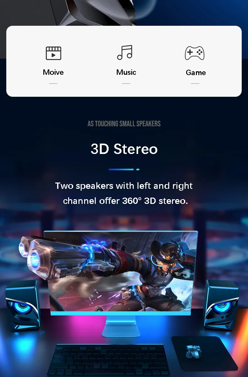 Gamers and entertainment enthusiasts will appreciate the superior sound quality and bass boost provided by these speakers. The clarity and depth of sound will elevate your gaming, movie watching, and music sessions, making them more immersive and enjoyable. The adjustable design ensures that the speakers are perfectly positioned for optimal sound, no matter what your setup looks like.