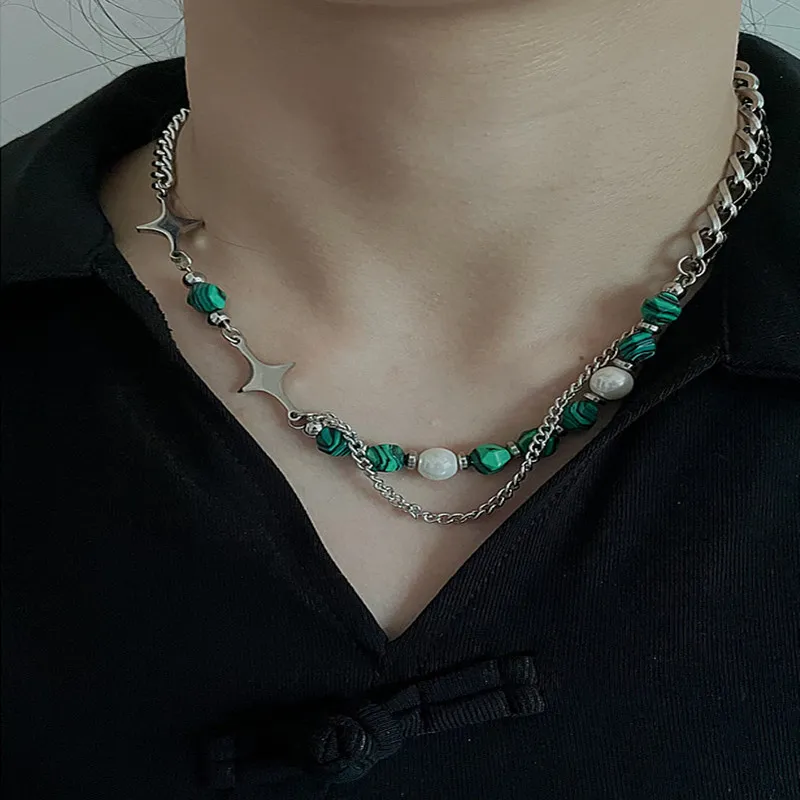 Color: Natural stone splicing steel chain