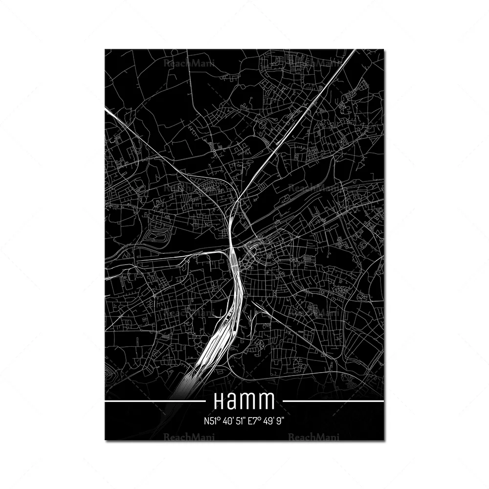 Map Black Line Poster Canvas Painting Home Decor Wall Art