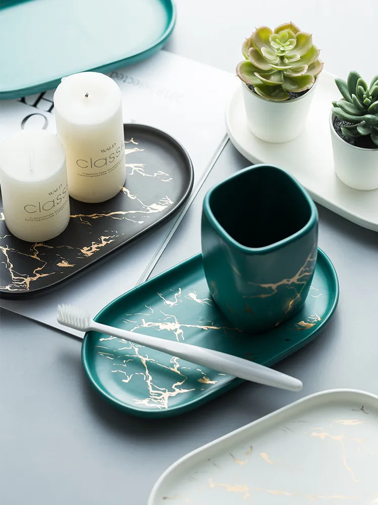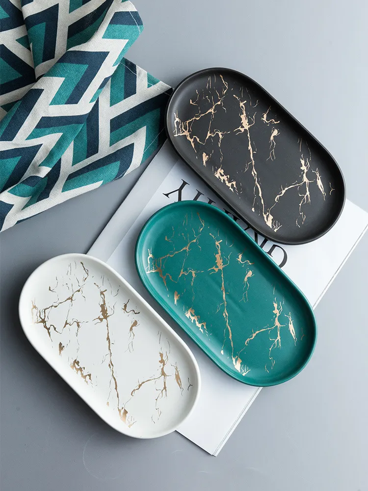 Marble bathroom storage jewelry oval tray