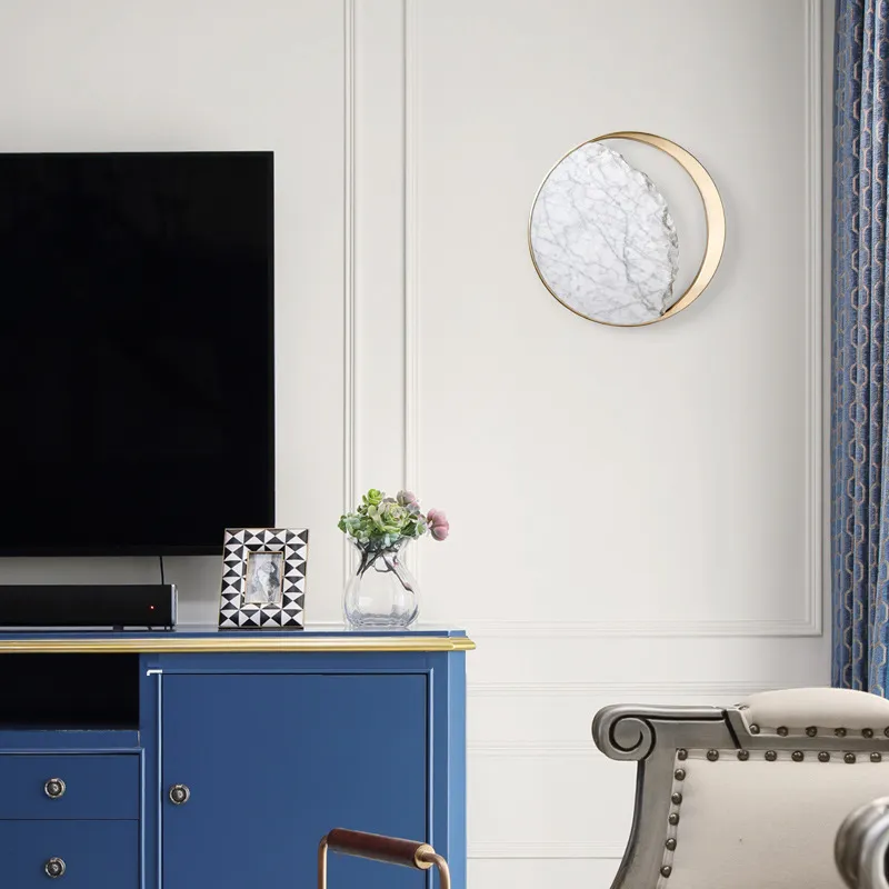 Introduce modern elegance and sophisticated lighting to your bedroom or living space with the Marble Bedside LED Wall Lamp Creative Art Design Eclipse Wall Sconce Lighting. This unique wall sconce blends contemporary design with artistic flair, offering a striking, minimalist aesthetic that complements a variety of interior styles. With its elegant marble finish and soft LED illumination, this wall lamp is perfect for creating a calming, ambient atmosphere in any room.