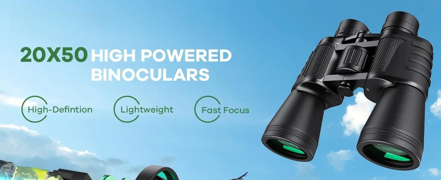 - 2025 UPGRADED BINOCULARS- Our premium binoculars feature a high magnification 20x zoom eyepiece and a 168 yard field of view at 1000 yards, allowing you to see and focus on the huge detail of your target from 1000 yards away.The super long distance between super broad and clear vision.It's ideal binoculars for adults bird watching, hunting, camping, climbing, hiking, safari, travel, opera, concert, sports events, and stargazing.It's ideal camping travel cruise essentials.