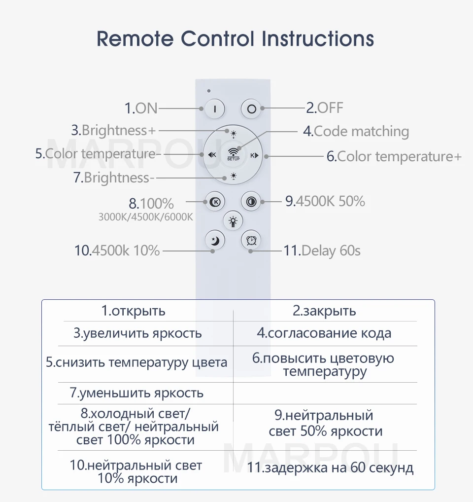 The MARPOU smart LED ceiling lamp provides customizable lighting for bedrooms and living rooms. It features dimmable LED lights and comes with a remote control, allowing you to easily adjust the brightness and ambiance of your space.