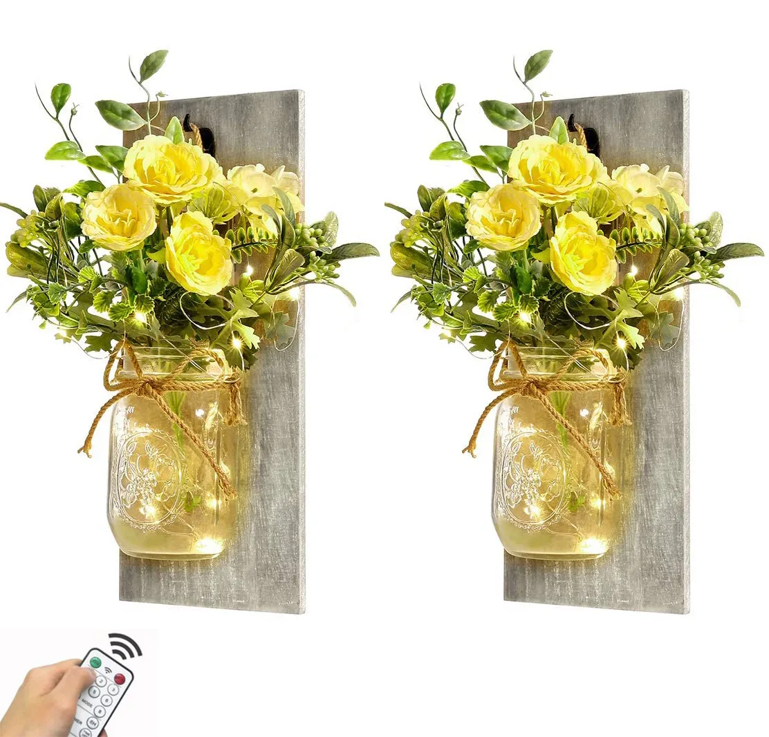 Mason Flower Wall Lamp Decoration