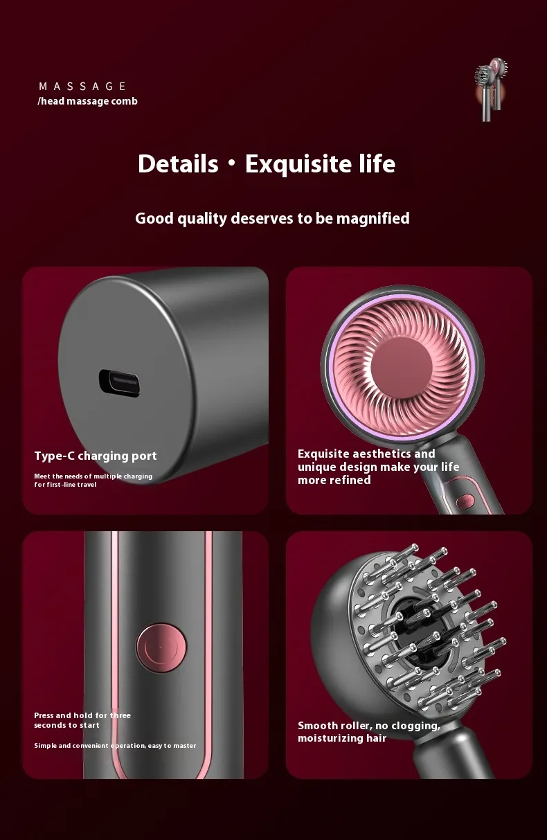 The Massage Comb Scalp Massager is a powerful hair care instrument designed to promote relaxation and improve scalp health. This innovative device combines the benefits of a traditional hairbrush with advanced massaging technology, providing a soothing experience that stimulates blood circulation and enhances overall hair health. The comb’s soft, flexible bristles gently massage the scalp, helping to relieve stress and tension while detangling hair with ease. Ideal for daily use, this scalp massager is suitable for all hair types, offering a versatile solution for enhancing hair growth and maintaining a healthy, balanced scalp.