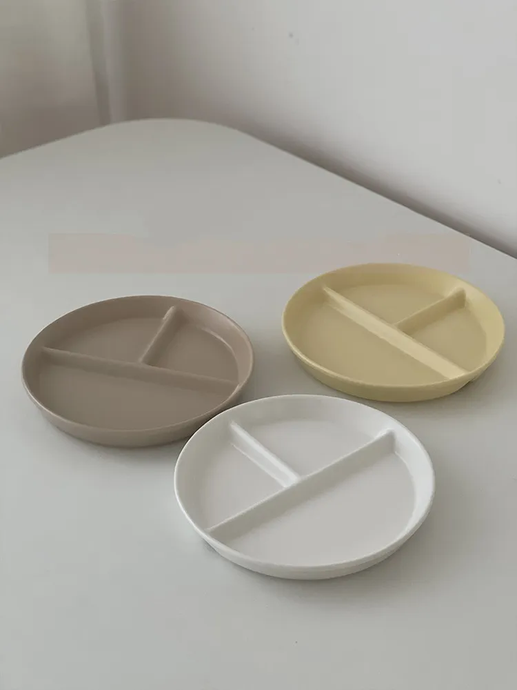 Color classification: Round three-compartment plate/khaki, round three-compartment plate/cream, round three-compartment plate/white