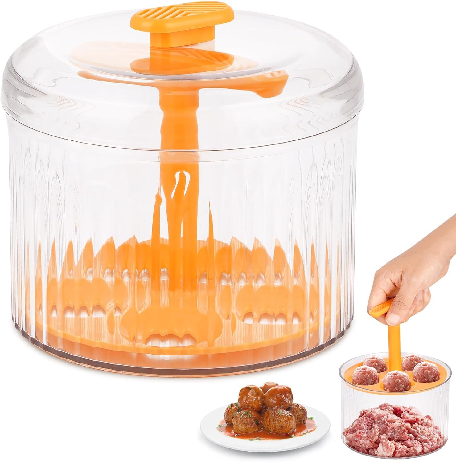 - 【Translucent Meatball Maker】the perfect tool for effortless meatball crafting! Simply place your meat mixture into the container, press down with the presser, and the top lid will mold the meat into perfectly shaped balls. No more sticky hands or messy countertops - just perfectly shaped meatballs with minimal effort.
