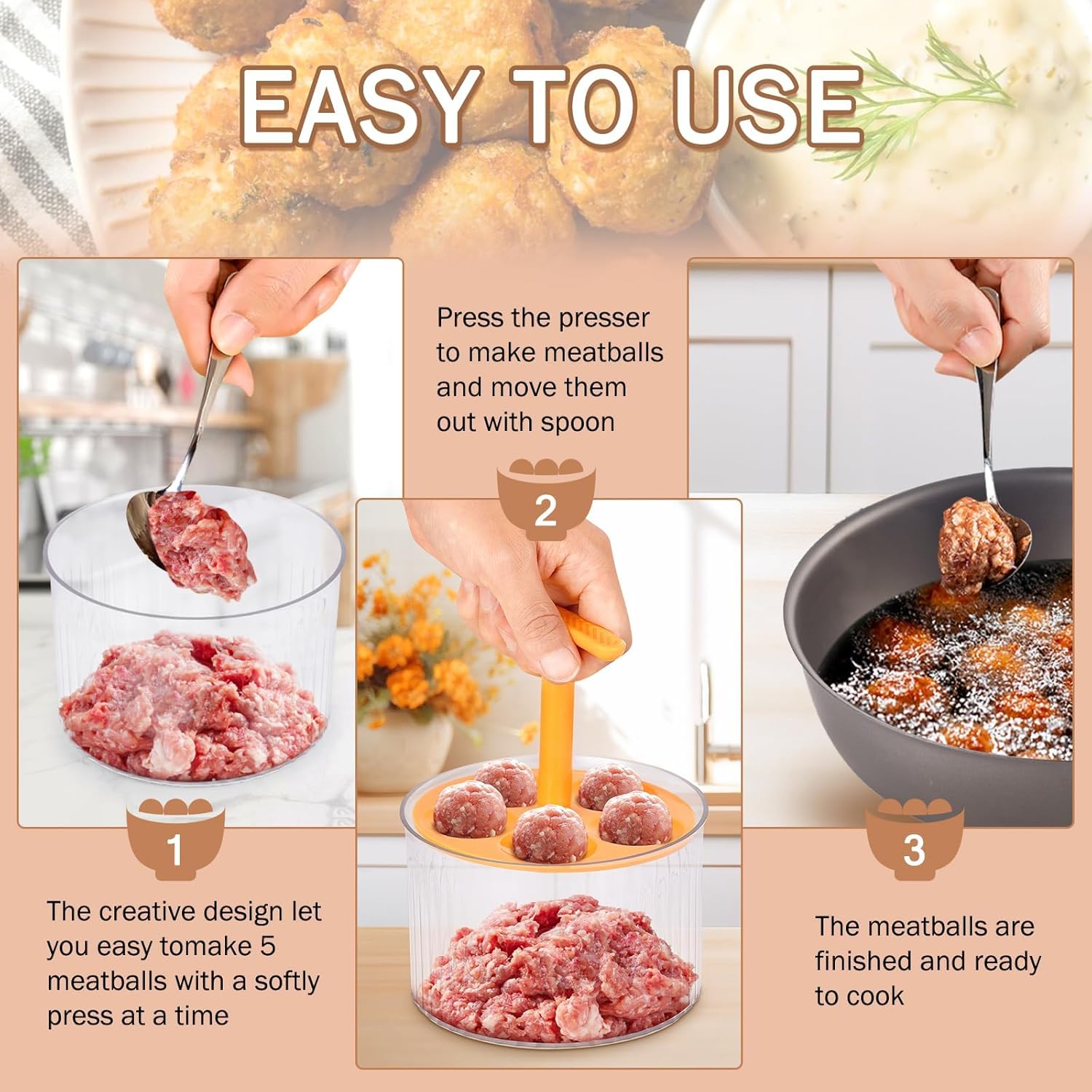 - Time-Saving Tool: Save time and energy in the kitchen with our Meatballs Maker Cooking Tools. You can make up to five meatballs at once, eliminating the need to shape each one individually. This tool allows you to prepare meals quickly and efficiently