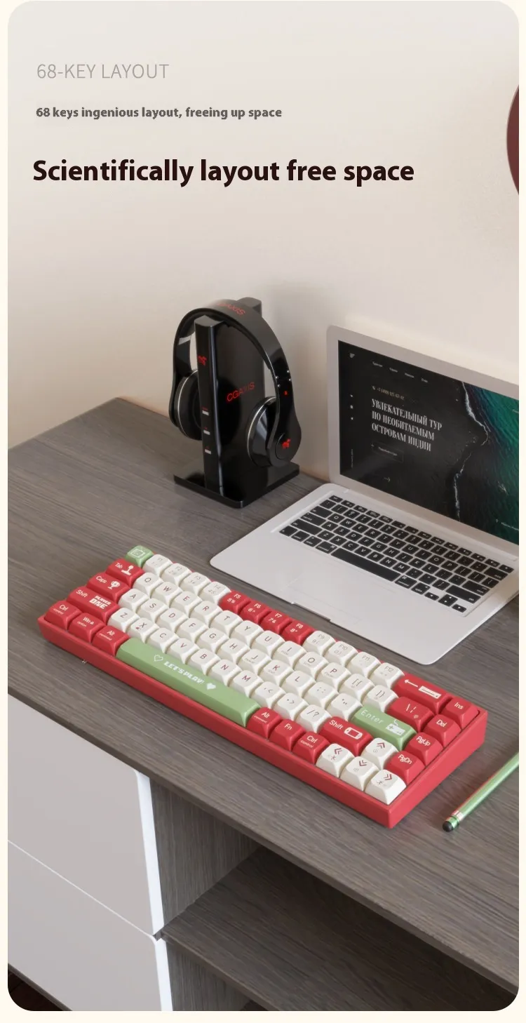 The Mechanical Game Wired Hot Swappable Keyboard is designed to enhance your gaming and typing experience with its customizable, high-performance features. Featuring a wired connection for ultra-low latency and responsive keypresses, this keyboard is perfect for gamers, typists, and anyone who demands precision and reliability in their devices. The hot-swappable functionality allows you to easily change the switches without soldering, offering full customization for your key response and feel. Whether you're immersed in an intense game or typing long documents, this keyboard delivers an optimized experience that caters to your personal preferences.