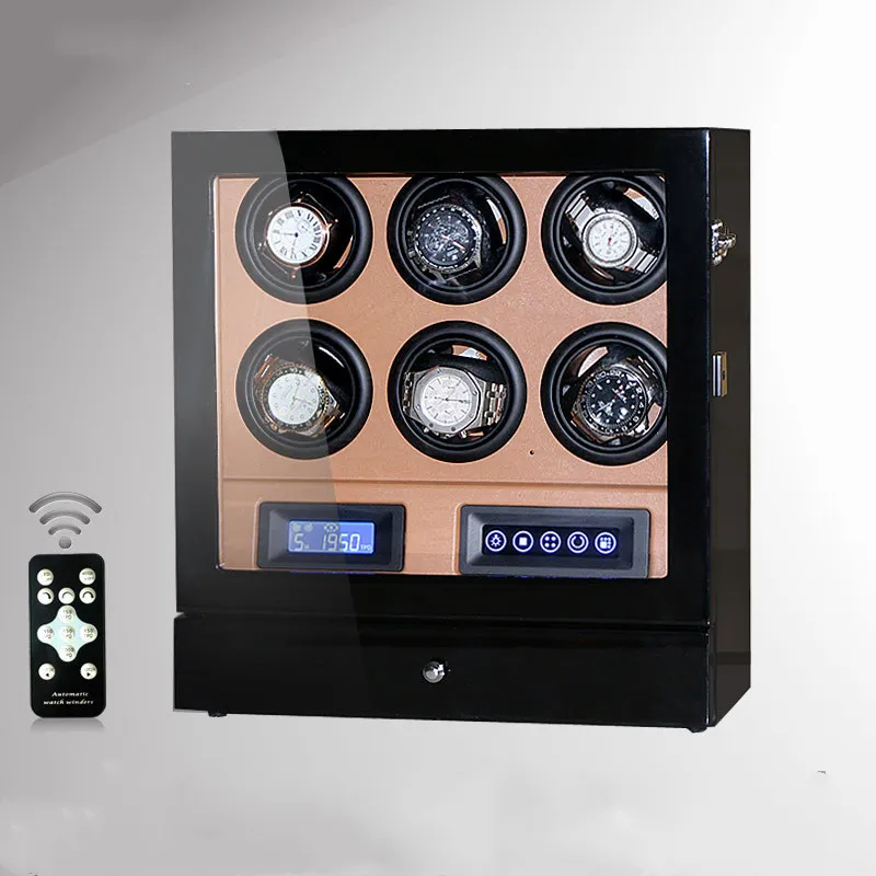 The Mechanical Watch Shaker features a modern, sophisticated design, making it an eye-catching display piece. Available in classic wood finishes, carbon fiber, and high-gloss lacquer, it complements any luxury watch collection.