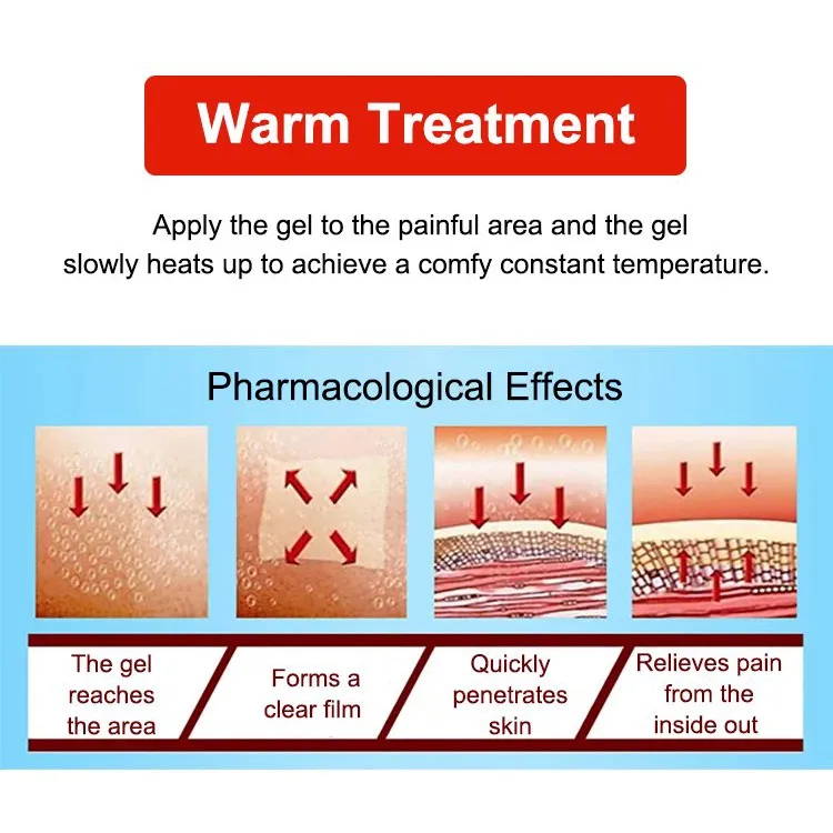 Natural Ingredients Formulated with a blend of natural ingredients, the gel includes herbal extracts known for their anti-inflammatory and analgesic properties. Ingredients such as menthol, camphor, and eucalyptus oil provide a soothing and cooling sensation that penetrates deeply into the affected areas. These components work together to relieve pain and reduce swelling.