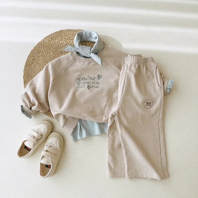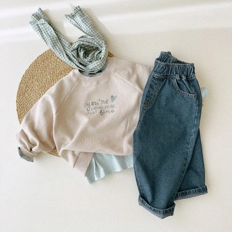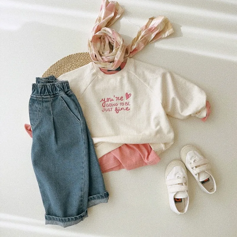 Medium and Large Children's Long Sleeve Letter Embroidery Fashionable Round Neck Loose Sweater – Stylish and Comfortable for All Seasons