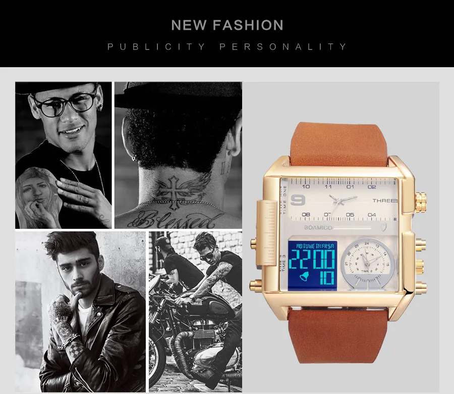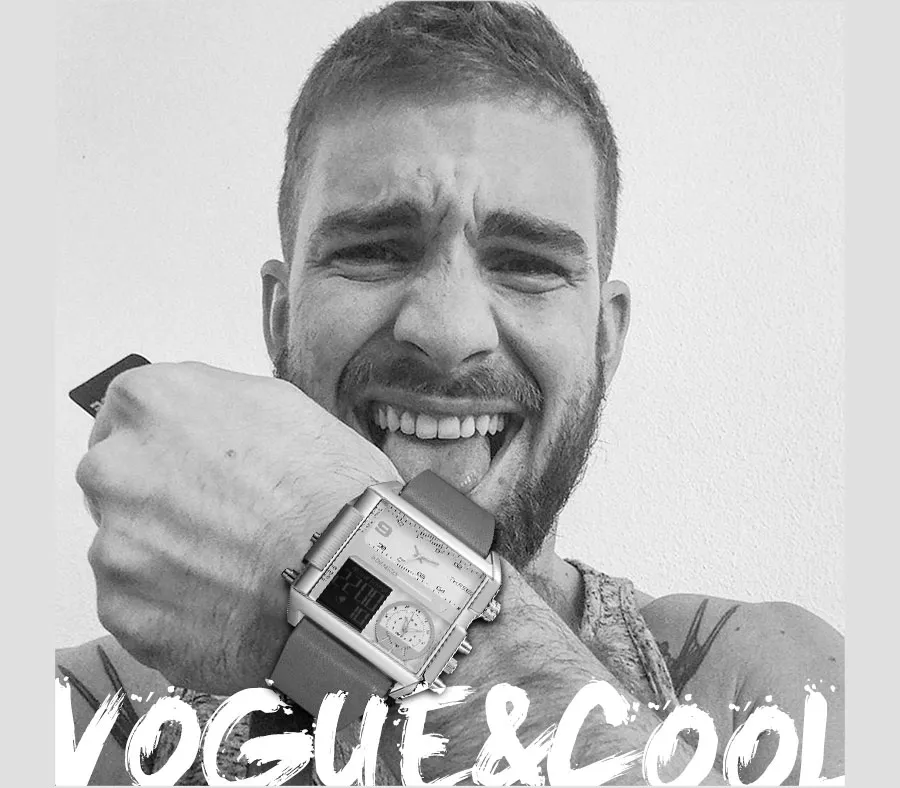 Men Sports Watches Man Military chronograph digital Watch Leather Rectangle Quartz Wristwatches