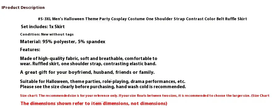 Easy Maintenance: The costume is easy to care for, either machine washable or spot-cleanable, depending on the materials