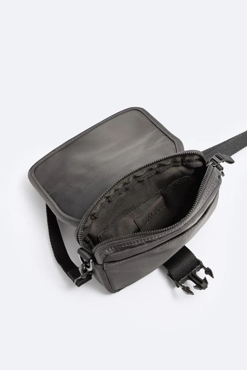The bag features a roomy interior perfect for carrying essentials such as your phone, wallet, keys, and small gadgets.