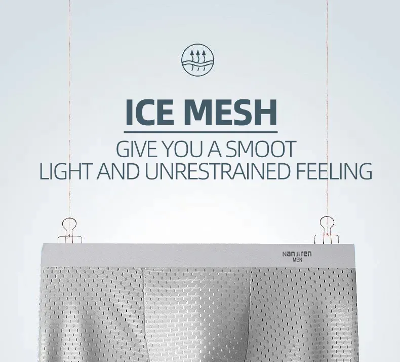 The Men's Breathable Mesh Ice Thin Summer Boxer Shorts are the perfect combination of comfort, breathability, and style for the summer months. Made from high-quality ice silk and mesh fabric, these boxer shorts are designed to keep you cool, dry, and comfortable, even during the hottest days. The breathable mesh material promotes airflow, ensuring that you stay fresh throughout the day, while the thin, lightweight design provides maximum comfort without added bulk.