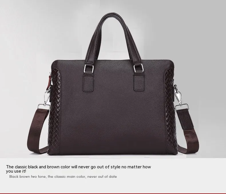 Men's Briefcase Genuine Leather 14-inch Laptop Bag Horizontal Cowhide Business Office Bag