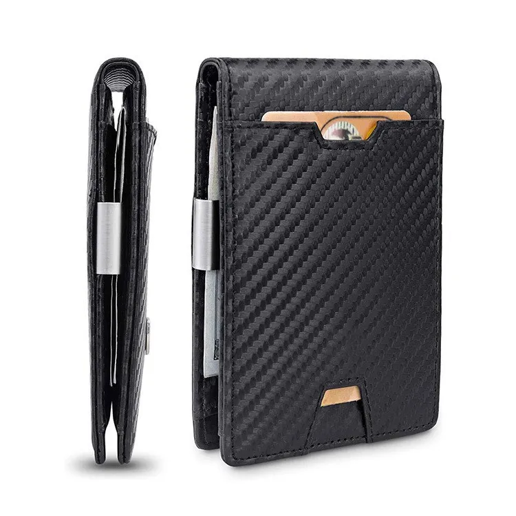 Men's Card Holder Fiber Leather Money Clip Wallet