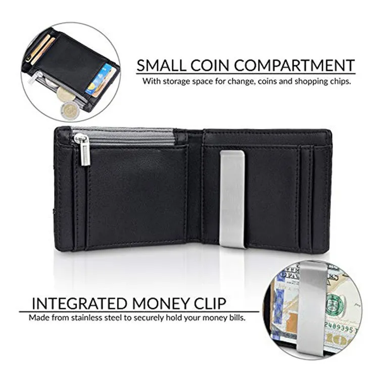 Men's Card Holder Fiber Leather Money Clip Wallet