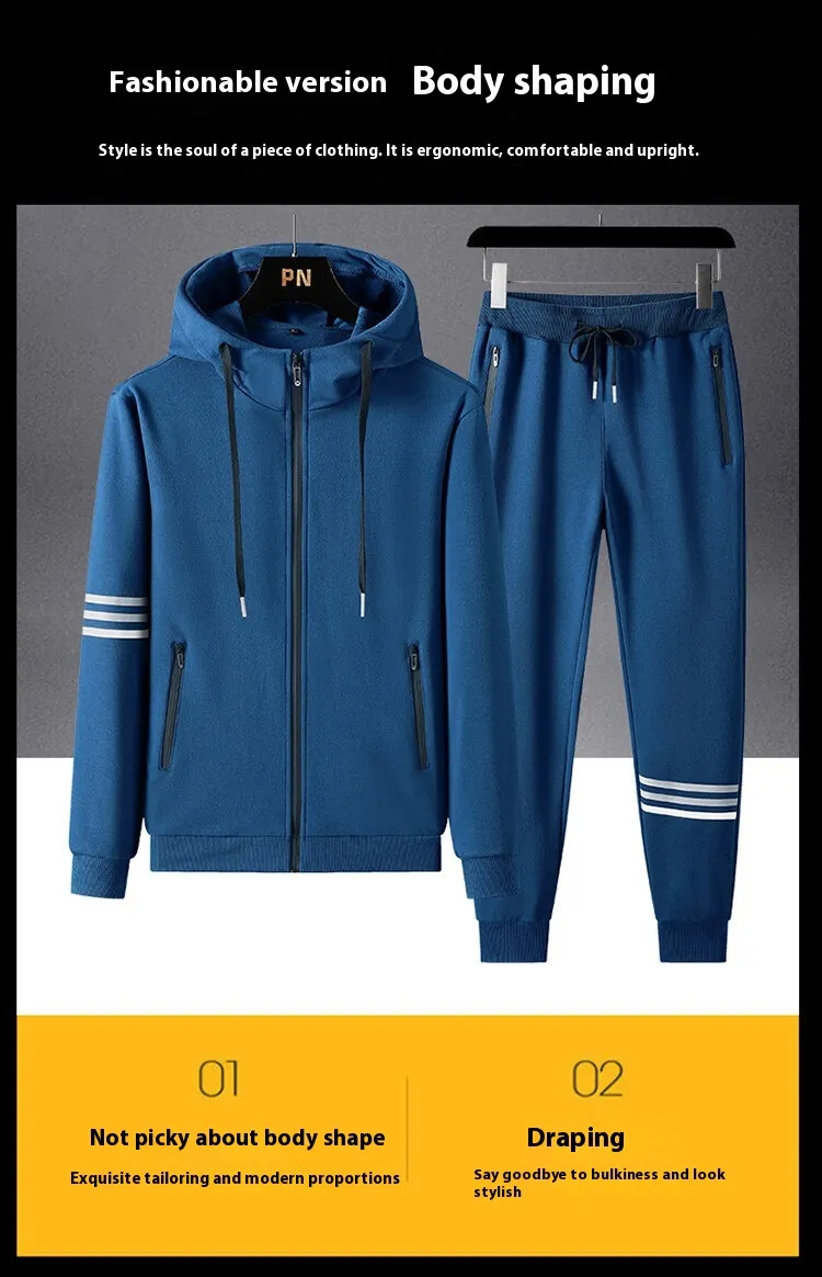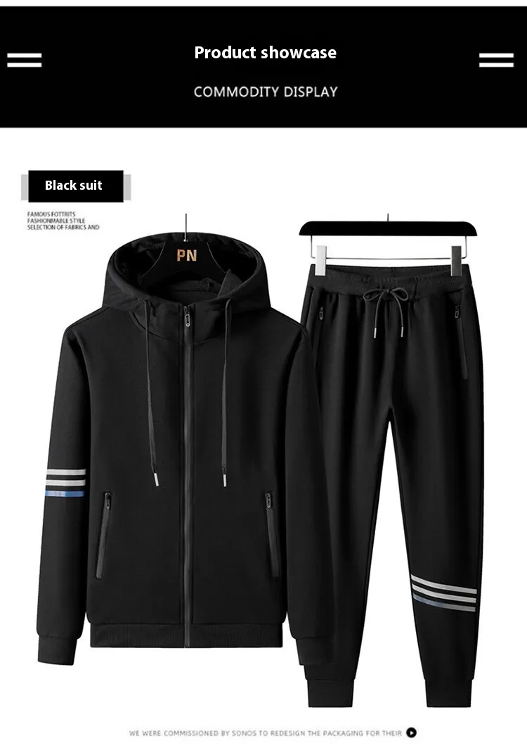 The hooded sweater is designed for a casual, athletic look, while the matching trousers offer a relaxed fit that moves with you. Perfect for active men who want both comfort and fashion, this set is ideal for everything from workouts to weekend lounging.