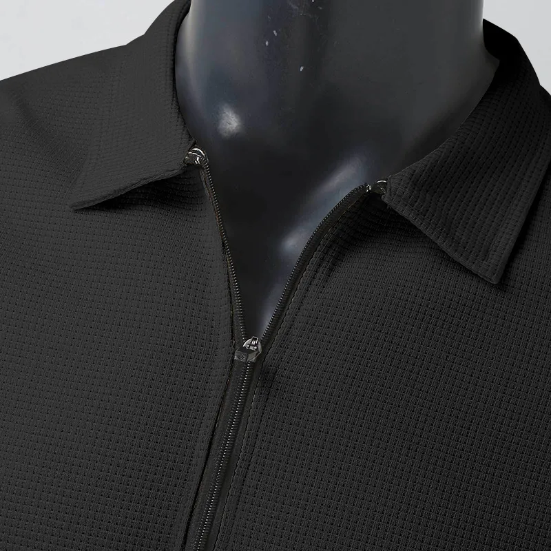 Men's Clothing Waffle Style Zipped Lapel Jacket Outdoor Sports Tops