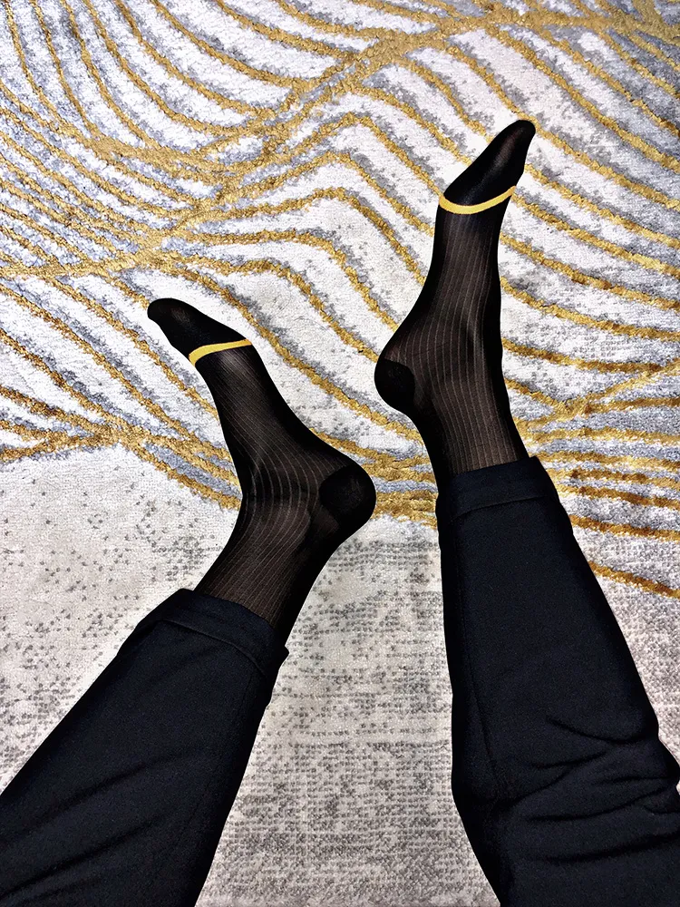 Stylish Design: Features dark-colored socks with contrasting golden toes for a sophisticated and modern look.