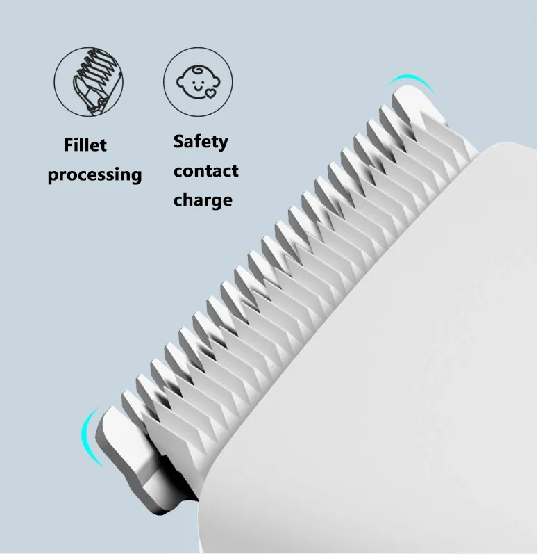 ● The parts that contact the skin with the cutter head and the positioning comb are rounded to ensure safety and comfort during the hair