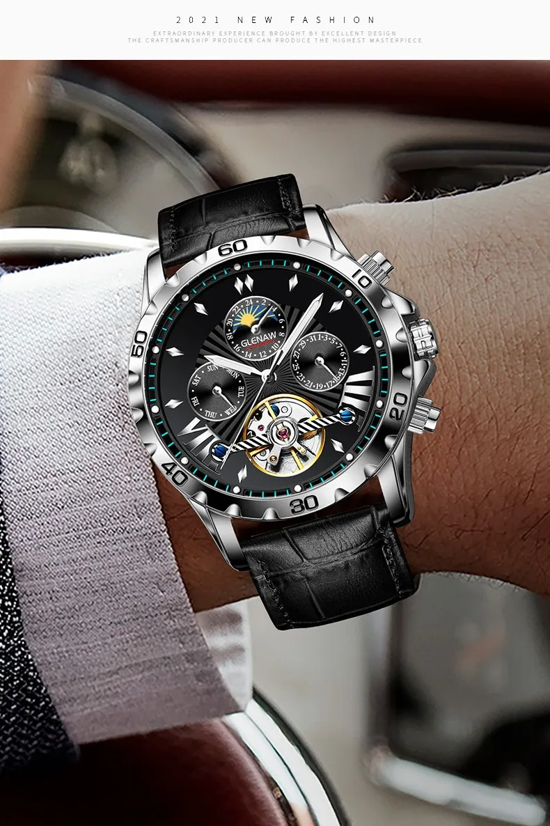 Elevate your timekeeping with the Men's Fashion Hollowed-out Automatic Mechanical Watch, a stunning blend of classic craftsmanship and contemporary design. Whether you're attending a business meeting, a casual outing, or a formal event, this mechanical watch is the ultimate accessory to enhance your style. Its hollowed-out dial not only reveals the intricate movement of the watch but also adds a unique aesthetic, making it a perfect blend of functionality and fashion.