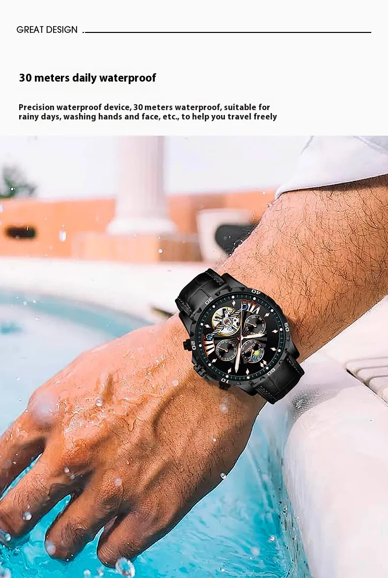 This watch boasts a minimalist yet refined design, with a clean and sleek look that fits perfectly with any outfit. Whether you're dressing up for a business event or wearing it casually, the Men’s Fashion Hollowed-out Watch complements your look with ease. Its versatile design makes it a great accessory for all occasions, exuding confidence and class.
