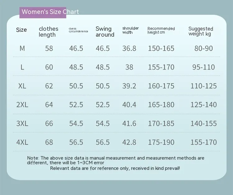 2-3cm differences due to manual measurement. 2. Please check the size chart carefully before you buy the item, if you don't know how to