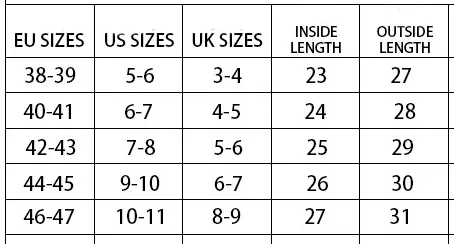 Size: 260:38-39 (suitable for 37/38), 270:40-41 (suitable for 39/40), 280:42-43 (suitable for 41/42), 290:44-45 (suitable for 43/44),
